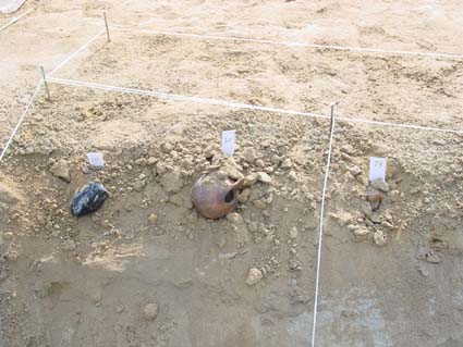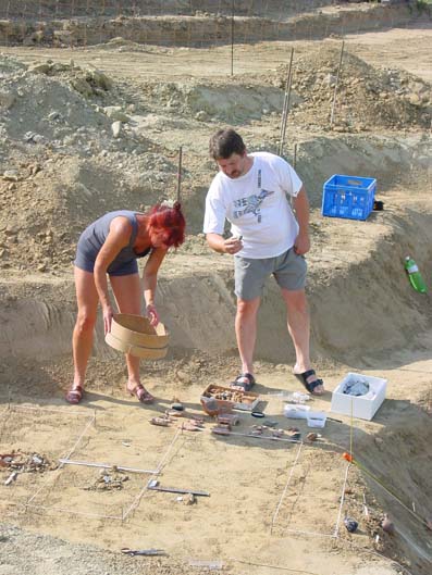 Prof. Dr. G. Braumeier Uni Berena mit Oberassistentin Dr. R. Gabriel bei den Ausgrabungen 2003 |
