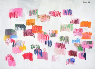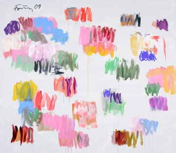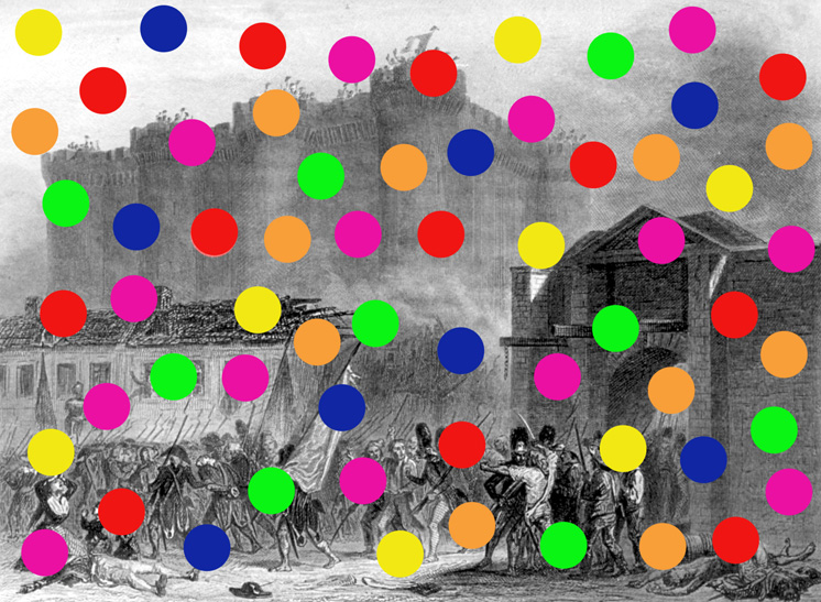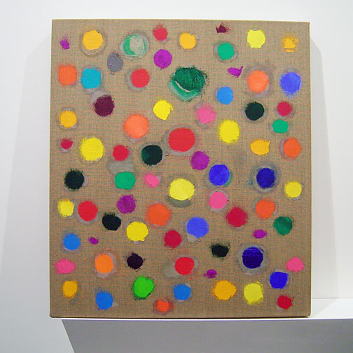 Von den vielen vielen Wasserfällen komme ich im Gedankensprung auf die vielen vielen bunten Smarties. Es ist endlich doch noch Sommer geworden in der Schweiz und es ist heiss auf dem Asphalt der Kirchenfeldbrücke. Aha, da war doch der sagenhafte Po der Isabelle Adjani in „L’été meurtrier“. Dieser Jupe mit den farbigen Tupfen. Und dann der Hinweis auf das Fahrrad-Rad von Duchamp. Man muss sich ganz genau erinnern. Diese Tupfen, dieser Hintern, dieses Fahrrad-Rad. Wo haben sie sich getroffen? In welchem Verlies, unter welchem Wasserfall? Wo haben sie diese erotische Verschwörung ausgeheckt, die Illuminaten Armleder, Polke, Zeniuk, Schär, Hirst, und Förg oder wie sie alle noch heissen mögen.