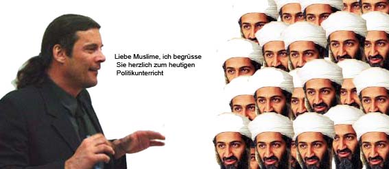 Für Freysinger und seinesgleichen sollten die verschleierten Leute in jenen Wüsten bleiben wo sie heimisch sind. Liebe Moslems, ihr seid doch hier bei uns gar nicht richtig wohl, ihr gehört doch zurück in die Idylle von 1000 und eine Nacht, was wollt ihr denn da in Wollishofen oder Rüfenacht? Und dann Moscheen neben alten Bauernhäusern mit ihren Buchsgärten und Geranien. Liebe Moslems, geht doch einmal an ein Schwingfest oder an ein eidgenössisches Jodlerfest. Stellt euch vor, die an solchen Anlässen allüberall anzutreffenden verkleideten Leute, mit ihren Sennenkäppis und Trachten, würden in Scharen eure Marktplätze heimsuchen und würden wie es eben ihre Leitkultur vorgibt vor euren Moscheen losjodeln, ihr würdet denen doch kurzum die Hände, um nicht zu sagen die Schreihälse, abhacken, ihr würdet das Wort Parallelgesellschaft gar nicht erst mal bemühen. |