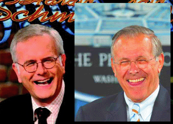 Der Beobachter der EU brachte als witzige Note ein, man könne doch Harald Schmidt als Double einsetzen. Seine Schwiegermutter hätte einmal seinen Sohn mit den Worten vor den Fernseher gerufen: “Schau Bub, das ist doch der Mann den du so gern schaust im Fernsehen." Der Sohn, ein Fan von Harald Schmidt, habe auf den Bildschirm geschaut und einen lachenden Rumsfeld gesehen. Da das Hörgerät der Schwiegermutter nicht funktionierte, merkte diese auch nicht, dass sie ein englisches Programm verfolgte. Sein Sohn habe dann auf dem Computer die Ähnlichkeit der beiden untersucht und sei erstaunt gewesen.